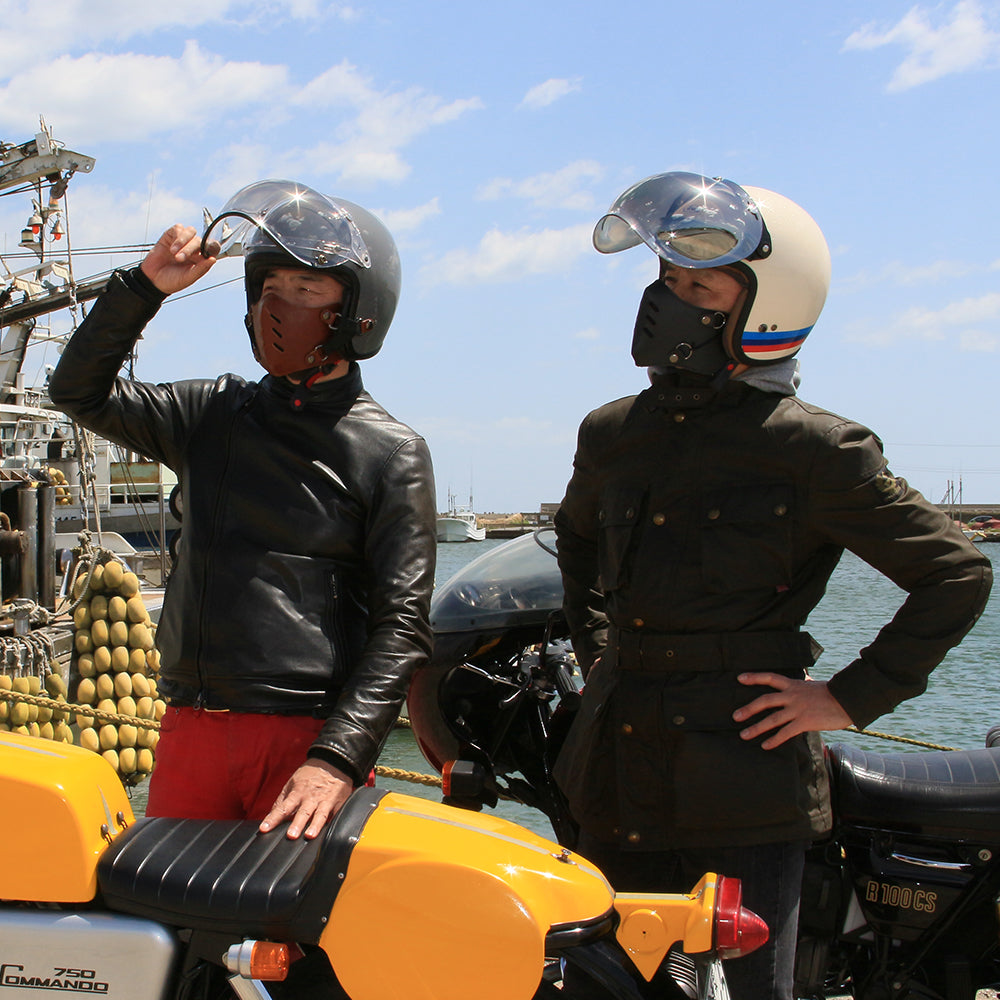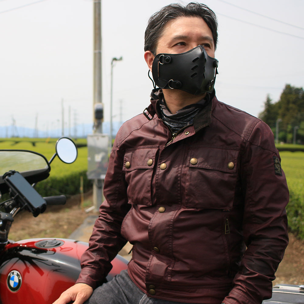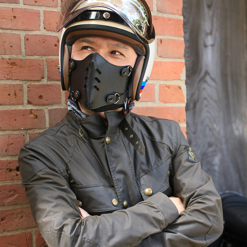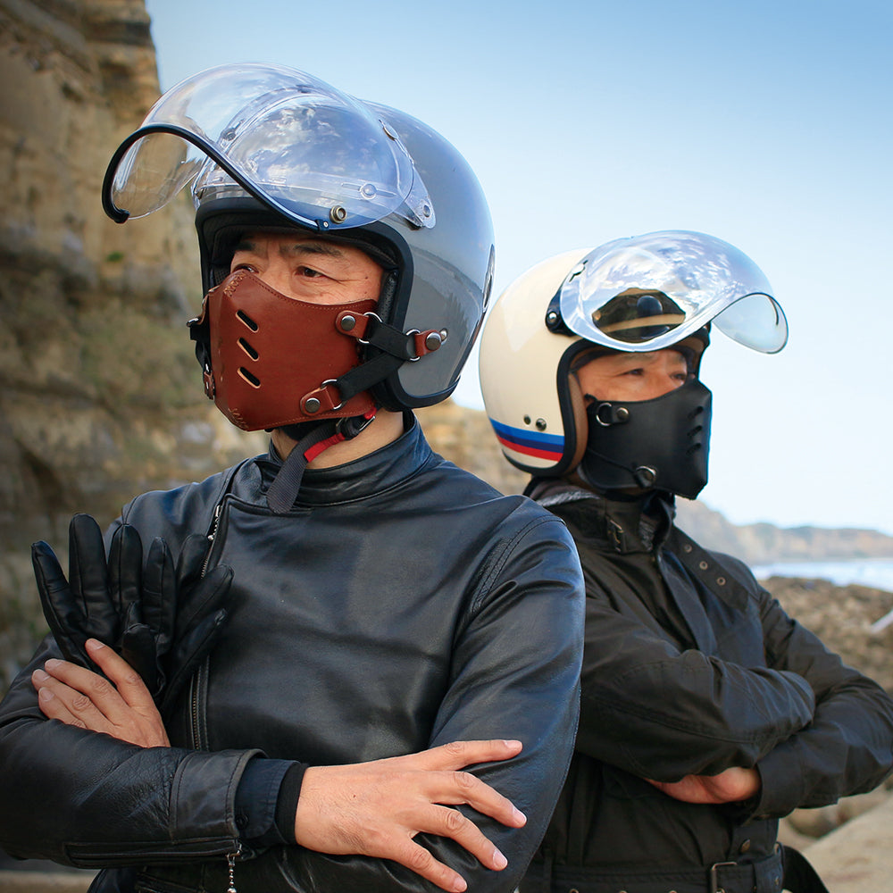 【予約販売】ライダーの顔を厳つく格好良く!本革フェイスマスク ジェットヘルメット取付 マスク装着が選べる